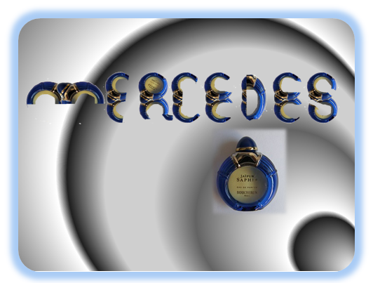 Leyendo los desafíos para la semana, recordé un bonito frasco azul de perfume, un recuerdo de viaje, y pensé que con su forma podría crear las letras de mi nombre: tomé la foto, después la inserté en Geogebra para hacer algunos movimientos, copié, corté, pegué en un editor de imágenes y finalmente pude formar mi nombre: